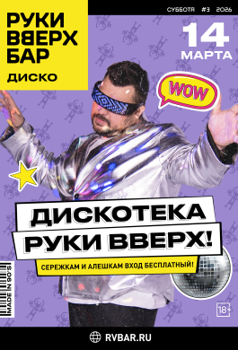 Любишь Руки ВВерх!? Помнишь наизусть горячие хиты? Готов зажигать всю ночь под “Крошку Мою”, “Студента” и спеть их в караоке? Тогда залетай на нашу фирменную вечеринку, посвященную легендарной группе.